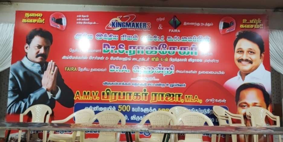 கிங் மேக்கர்ஸ் தலைவர்டாக்டர் எஸ். ராஜசேகர் பிறந்த நாள் விழா 10,000ஹெல்மெட்களை வழங்கி சாதனை