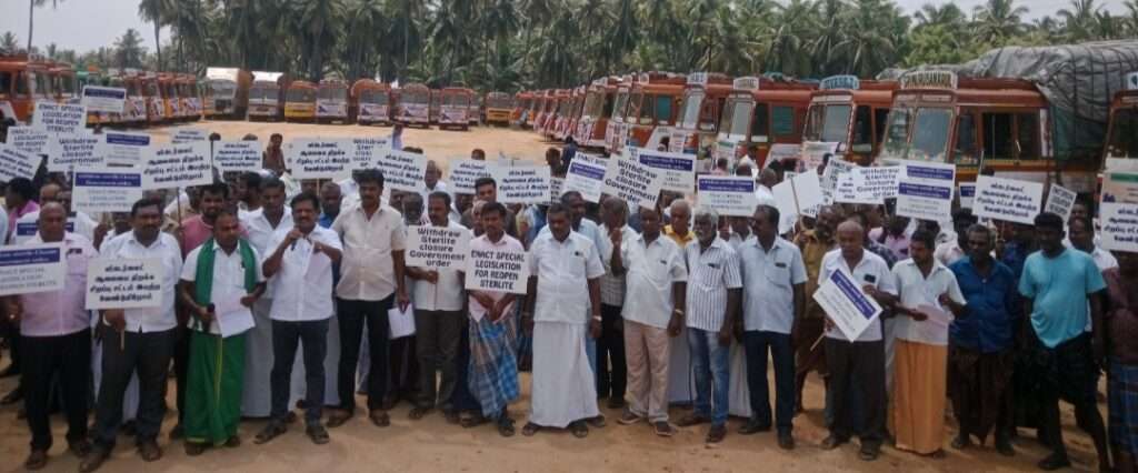 In a powerful demonstration aimed at drawing attention to the plight of those affected by the shutdown of the Sterlite Copper plant, members of the Paramathi-Velur Taluk Lorry Owners’ Association staged a protest demanding that the Tamil Nadu Government issue a Government Order (GO) to reopen the facility.
