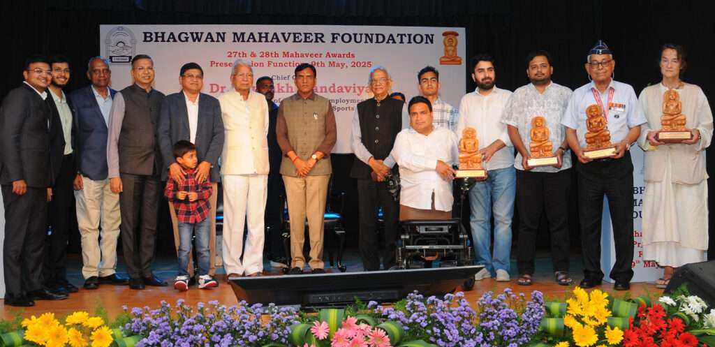Hon’ble Union Labour and Employment and Minister of Youth Affairs and Sports Dr. Mansukh Mandaviya presented the 27th and 28th Mahaveer Awards, instituted by the Bhagwan Mahaveer Foundation, honouring champions of diverse humanitarian causes including non-violence, education, medicine, and community service, at a grand function held in the city recently (on 9th May).